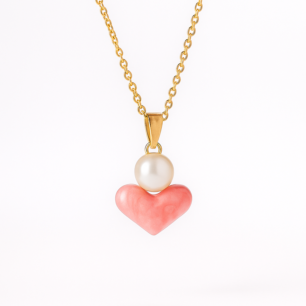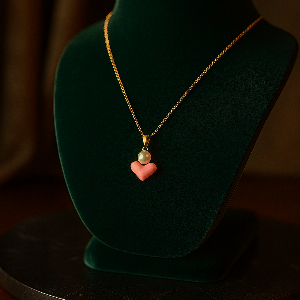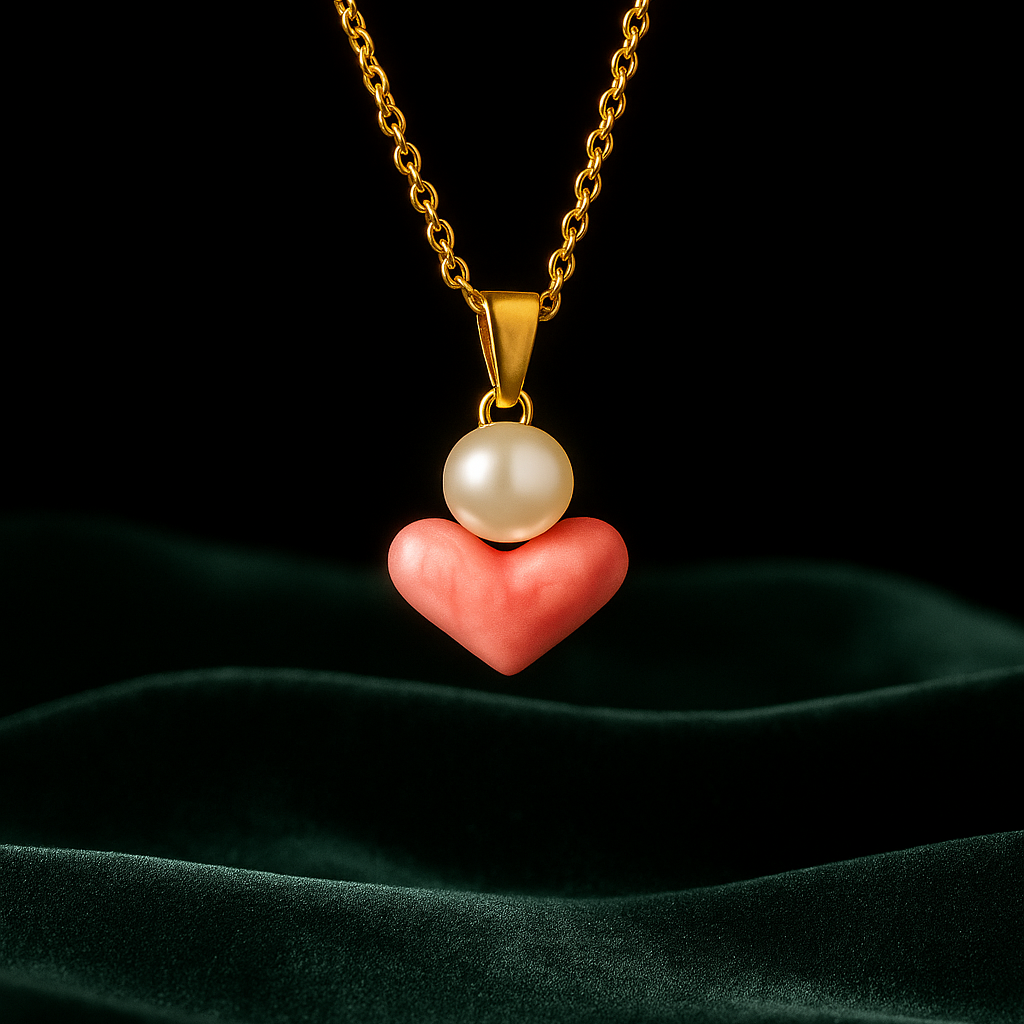 Suspended on an 18K Gold Vermeil chain, its silhouette is clean, timeless, and profoundly emotive. The pearl’s iridescence dances in the light like moonlight on water, while the warm blush of the coral brings a poetic innocence, like the first bloom of affection, or a memory tucked away in a locket.